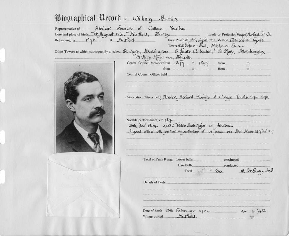 Places:Place of Birth: Nutfield, Surrey Began ringing at: Nutfield Tower from biographical record etc.: St. Mary Beddington, St. Paul'sCathedral, St. Mary Bletchingley, St. Mary Magdalene, Reigate |