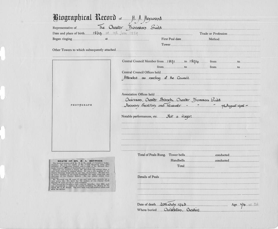 Places:Place of Birth: Began ringing at: |