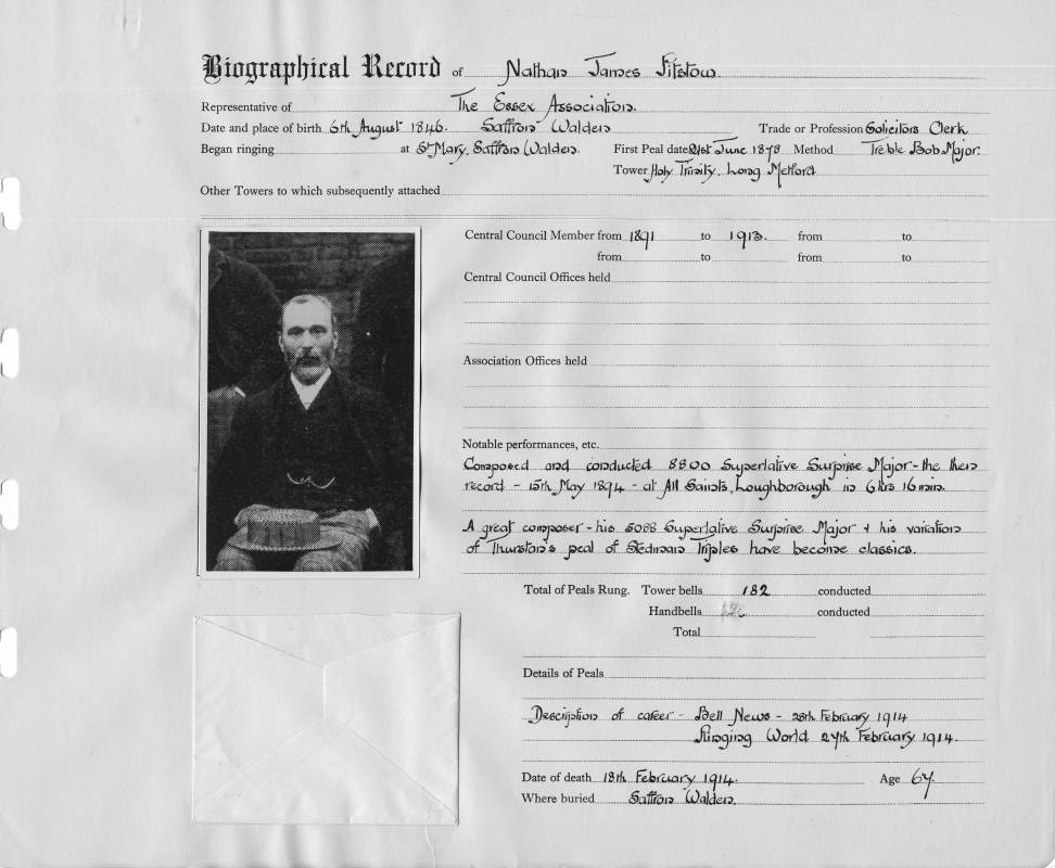 Places:Place of Birth: Saffron Waldon Began ringing at: St Mary, Saffron Waldon Tower mentioned in obituary: Saffron Walden |