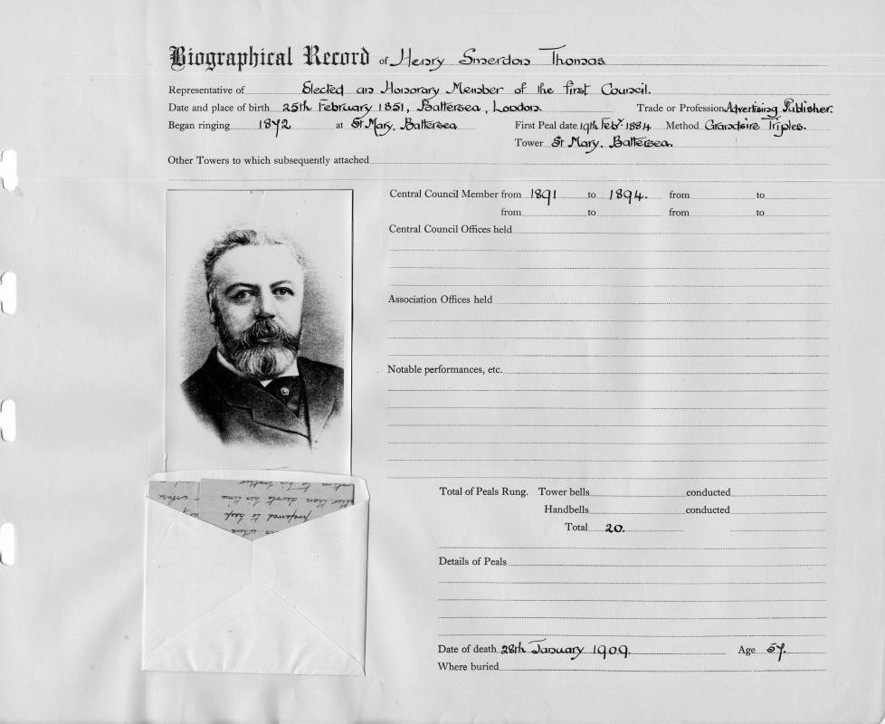 Ringing records:Began ringing: 1872 First peal: Grandsire Triples St. Mary, Battersea 19/02/1884 Total peals rung: 20 |