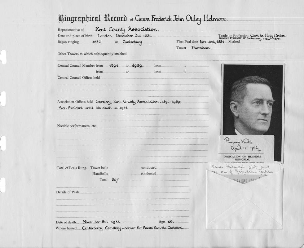 Places:Place of Birth: London Began ringing at: Canterbury Tower mentioned in obituary: Canterbury |